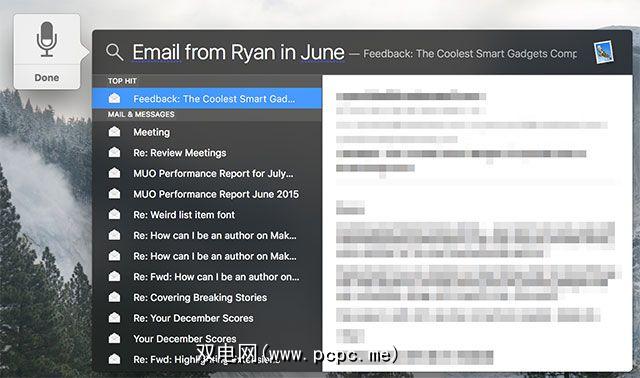 启用听写功能后,只需双击您的热键即可让计算机收听。将此功能与Spotlight搜索结合起来,后者已经支持El Capitan中的自然语言查询,您几乎可以使用语音搜索计算机。您甚至可以从Spotlight窗口中拖放结果,就像Siri允许在Sierra中一样。