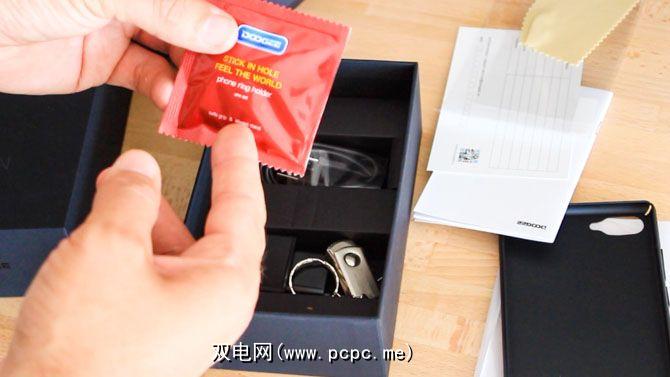 在包装盒中,您不仅可以找到普通的充电器,电缆和屏幕保护贴(已附带一个),还有一些其他的东西有一个黑色的哑光塑料外壳,一个8GB USB拇指驱动器和一个戒指架。我必须承认,当我看到戒指架包装时,我对其中的内容有些怀疑。