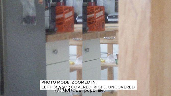 我的厨房经过裁剪和缩放以显示差异。左侧的照片被故意遮盖了辅助传感器,而右侧的照片照常被发现了。其他条件没有改变,您可以清楚地看到它有助于提高图像的整体清晰度。