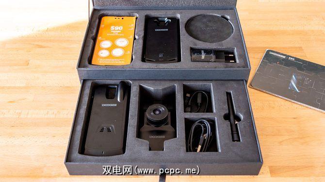 在发布时,Doogee S90具有4个可互换模块:一个5,000mAh电池组,“夜视"相机,对讲机和游戏手柄。稍后会承诺提供5G模块,如果这个想法得以实现,那么可能会有更多模块。