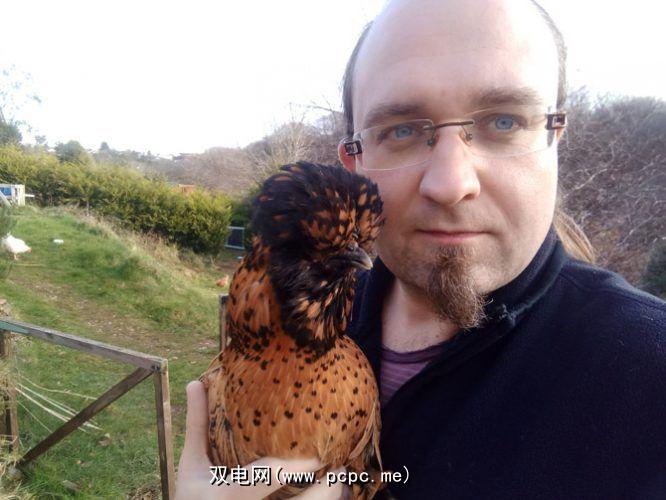 在上图中,您可以看到算法存在轻微错误包括在相机主体下方的瓶子中的清晰对焦区域,但为了公平起见,我为此测试尝试了一些故意的困难。更自然的镜头可以可靠地工作,就像这两只美丽的救援母鸡: