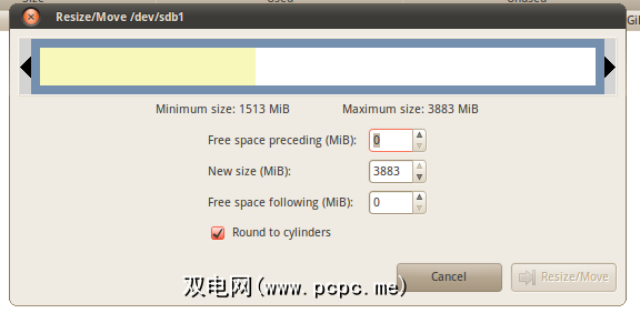 几乎每个实时CD(包括Ubuntu)上都有一个名为GParted的程序。该软件是出色的分区编辑器。在软件中,您可以更改任何分区的大小。只需右键单击分区,然后单击调整大小。您会看到一个易于理解的窗口。