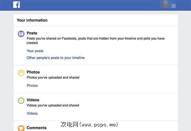 下载的Facebook数据中不包含什么?