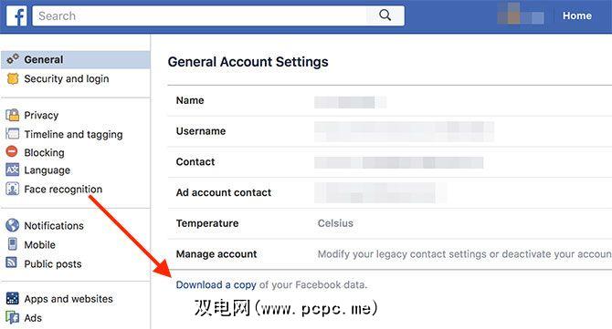 所有Facebook用户都可以通过其“常规帐户设置"请求下载数据。无法使用Facebook的移动应用程序执行此操作。相反,您需要使用浏览器登录到桌面网站: