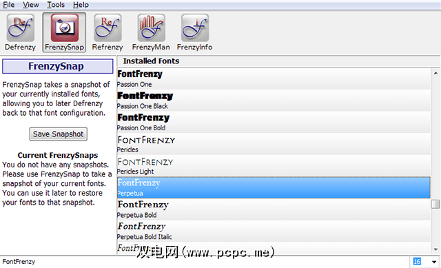 字体疯狂(免费):这个漂亮的程序带有四个有用的工具,你会爱上你。 FrenzyMan 使您可以添加和安装一个或多个字体文件。 Defrenzy (Defrenzy )删除系统附带的所有字体。 FrenzySnap 对Fonts文件夹进行快照(或备份),并且 Refrenzy 可以还原由FrenzySnap快照的字体。对于大多数用户而言,Font Frenzy非常棒。