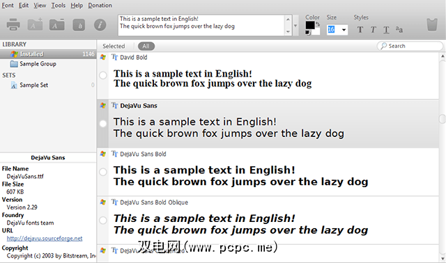 Nexus字体(免费):该程序的工作原理独特。您可以将字体安装到NexusFont本身,而不必在系统上安装字体。 NexusFont运行时,程序中加载的所有字体均可供系统使用。关闭NexusFont后,字体将不可用。这样可以节省空间和内存,而且不需要安装NexusFont,使其成为最佳便携式程序的有力竞争者。