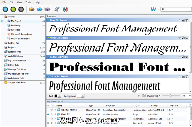 AMP Font Viewer(免费):这个令人难以置信的程序为其价格提供了很多实用性。它可以保存分为两类的字体库:已安装和未安装的字体。字体可以临时安装,以防您只想测试它们或只需要一小会儿。甚至可以对它们进行标记和分类,以便于组织。
