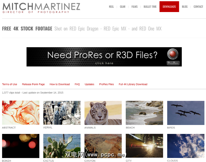 Martinez的视频分为整洁的类别,如动物,空中射击,光线,风景,城市,粒子,水,游戏中时光倒流等。单击类别,找到视频,然后可以在Vimeo上预览。然后单击“下载剪辑"按钮,将全分辨率视频保存在硬盘上。
