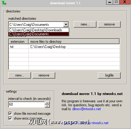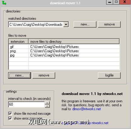 To开始使用Download Mover,确定要监视的文件夹并查看新的下载。该文件夹应该是您始终将文件保存到或通常下载到的文件夹。选择文件夹后,您将需要确定要从该文件夹移动的文件类型以及要移动到的位置。