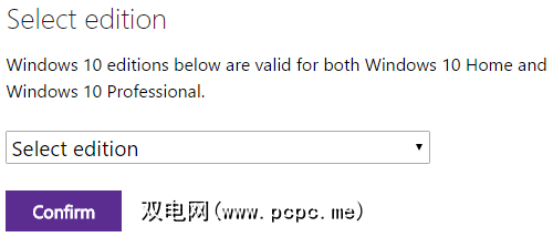 要下载Windows ISO文件,请进行选择,然后单击确认(WZT)。