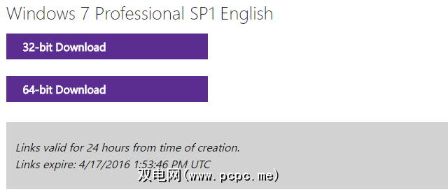 最后,您将能够下载32位和/或64位Windows ISO文件。请注意,这些链接将在创建后的24小时后失效。