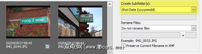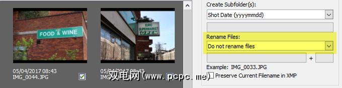 Bridge为您提供了很大的灵活性(如果您选择重命名) 。您可以重命名文件以匹配今天的日期,拍摄日期,自定义名称,拍摄日期+自定义名称,自定义名称+拍摄日期或子文件夹名称。