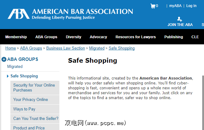 美国律师协会(ABA)网站涵盖了网站安全性,隐私权,付款方式等内容。该网站还涵盖了棘手的主题,例如,当卖家从未发送过您的商品或何时运送有缺陷的物品时。