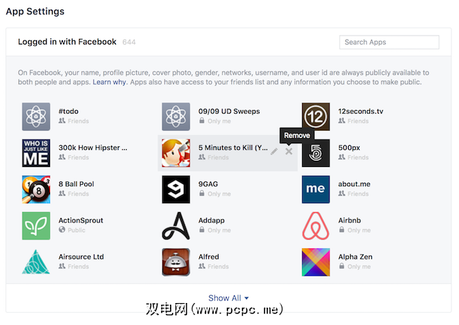 有很多应用程序希望挂接到您的Facebook帐户作为登录方式设置另一个帐户,或者只是让您玩游戏。您拥有数十个甚至数百个可以访问Facebook的应用程序的可能性很高。