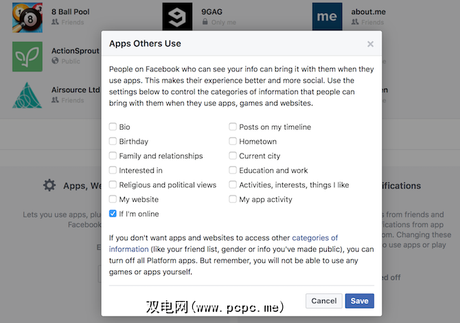 即使您无法控制其他人如何将Facebook平台用于第三方应用程序和网站,也可以控制自己的哪些信息