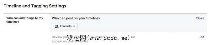 可以在时间轴上发布信息的人有两个设置:朋友或 Only Me 。如果允许朋友发布,则他们可以在您的时间轴上直接写消息或发布链接和媒体。启用仅我后,朋友将不会在个人资料上看到允许他们发帖的框。