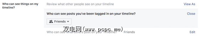 在此部分中,您可以选择谁可以在时间轴上看到您被标记的帖子? 。您可以在所有人,朋友的朋友,朋友,仅我或自定义。