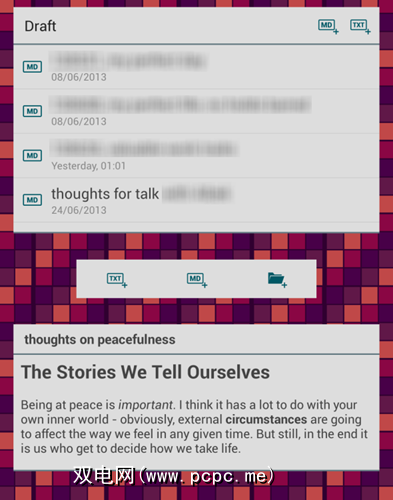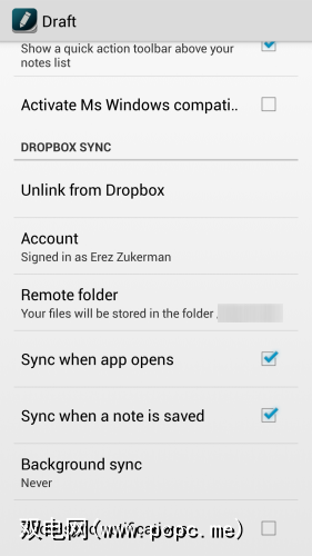 Draft可以插入Dropbox,并让您选择想要保留便笺的任何文件夹。同步有两种方式:开始在草稿中记下想法,将其充实到您的计算机上,然后在不使用计算机时再次回到“草稿"以进行最终阅读(例如)。之所以能成功,是因为与Diaro和其他众多应用不同。因此,您的笔记得到了备份,并且您没有被锁定。首先要做的事情。
