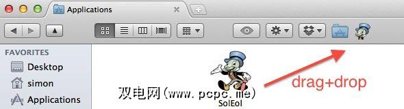 现在,将SolEol应用程序图标拖放到Finder栏中。而已。下次要搜索字幕时,只需将视频文件拖放到Finder栏中的SolEol图标上,主搜索结果将自动下载到视频文件夹中并相应地重命名。