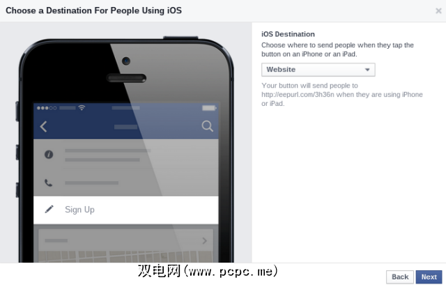 一旦您选择了所需的按钮,就可以尝试一下,您选择要将读者重定向到的网站。您也可以根据需要指定该网站的移动版本。在接下来的步骤中,您可以选择一个特定的应用程序供iOS或Android用户打开,也可以将其发送到移动网站。设置非常简单。