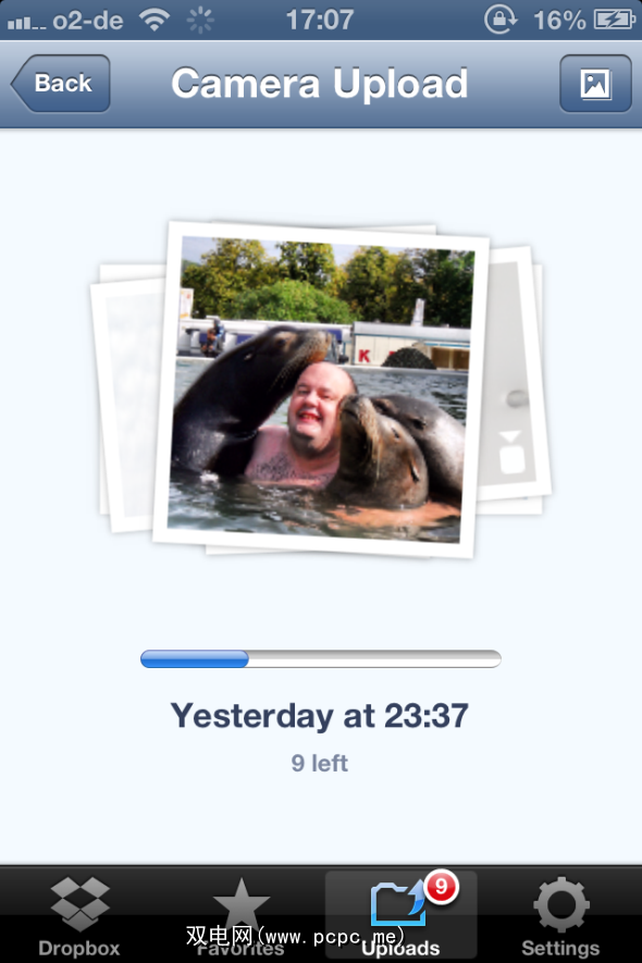 THIS到目前为止是Dropbox的 killer 功能,这一功能使Dropbox对我来说完全无价。拍照时,我希望它们可以立即传输到PC上以用于备份目的,也可以打印为适当的照片(如有必要)。无需弄乱USB电缆,Dropbox可以立即(当您打开Dropbox应用并点击 Uploads 时)会将iPhone图片库中的所有新照片发送到您的在线Dropbox帐户。