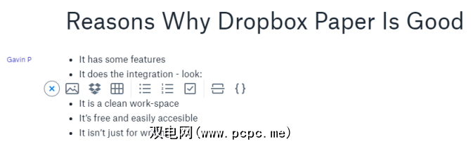Dropbox纸张有潜力。最重要的是,出色的嵌入和集成功能,简洁开放的设计以及坚决的文件管理工具为Dropbox的协作工作区工具奠定了坚实的基础。目前,它是一种轻便的笔记协作工具。但是,如果它想与Google Docs真正竞争,我认为Paper将不得不提供更多的编辑功能。