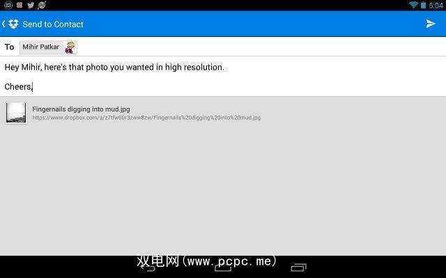 在Android上,Dropbox现在有一个新的通知供稿,可向您显示人们与您分享的内容的活动日志。但更重要的是,它获得了通过电子邮件与非Dropbox用户共享文件的新功能。点击任意文件上的“共享"按钮,然后选择“发送给联系人",以与您的联系人列表中的任何人共享指向该文件的链接。十分简洁!