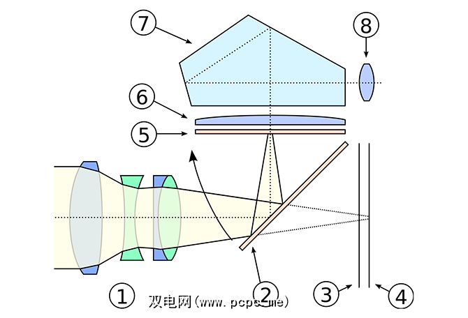DSLR相机在内部相机传感器的前面有一个镜面,该镜面通过取景器反射光线。当您按下快门按钮时,反光镜会向上抬起以露出传感器并允许捕获图像。