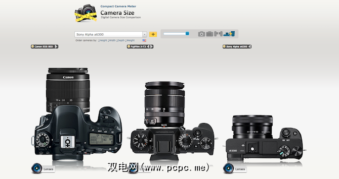 通过网站camerasize.com,您可以比较几乎所有带镜头的流行相机的相对尺寸。