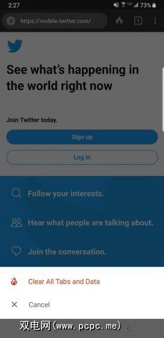 该应用程序还具有“刻录"功能。点击浏览器顶部的小火图标,DuckDuckGo将永久删除您打开的标签页和数据。