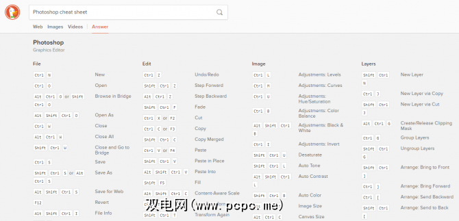 键盘快捷键可以加快您的工作流程,在DuckDuckGo上查找这些快捷键再简单不过了,而且可以节省时间。假设您必须为其中一门课程大量使用Photoshop。只需输入 Photoshop备忘单。您会获得与该程序一起使用的键盘快捷键的完整列表。切换到新的操作系统?使用 Mac OS备忘单或 Windows 10备忘单查找这些键盘快捷键。
