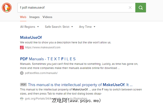 您可以将查询的搜索结果限制为PDF文件。只需键入 f pdf ,然后输入您的查询即可。您可以使用此技巧来查找适合宿舍使用的食谱书,以及公共领域书籍的PDF,甚至在紧急情况下甚至可以免费获得SparkNotes PDF。