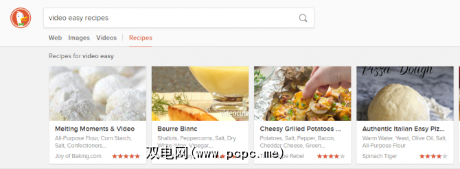 如果您想将搜索重点放在视频内容上,只需将视频放在查询的开头。您将在页面顶部浏览约28个视频。或者,如果您觉得方便的话,也可以点击更多视频按钮在一个屏幕上查看所有视频。假设您想要的是简单食谱的视频,而不仅仅是写说明:只需键入简单视频食谱。