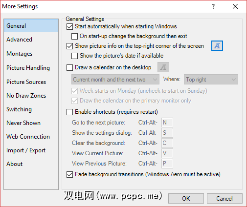 最后,John的Background Switcher内置了用于多显示器设置的选项。当我使用两到三台显示器时,Ultramon是我使用多显示器管理工具的地方。但是,JBS可以很好地完成工作,尽管可以轻松地将不同的图像发布到每个监视器。可以使用每台显示器上的不同图片选项来实现。