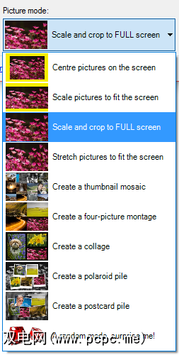 此外,还有许多图片模式可供选择。 “基本"选项包括默认的缩放并裁剪为全屏,将图片居中显示和缩放图片以适合屏幕。这些选项类似于默认的Windows 10背景选项。