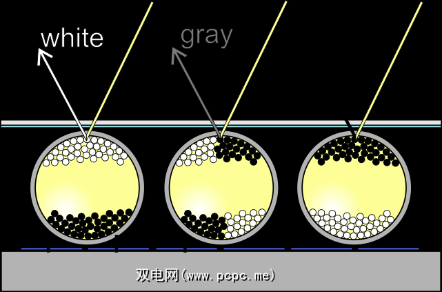 整个过程称为电泳。根据电极层的充电方式,每个区域中颜料的比率都会变化,这样的比率就是在屏幕上产生不同程度的灰度的产物。