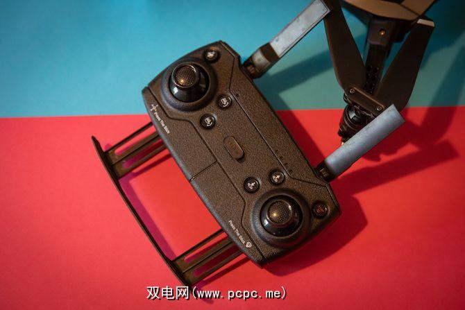 模拟控制杆的位置符合人体工程学,且光滑。该控制器上没有屏幕,但周围有许多分散的按钮,用于开始/停止记录,拍照,一键式起飞/降落,紧急停止等。四个LED状态指示灯显示剩余的控制器电池电量。
