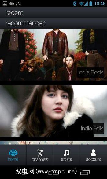 最好的选择是从“家"中选择一个推荐频道“ 标签。我从另类摇滚开始,但后来发现独立摇滚和独立流行音乐更符合我的喜好,因此请探索一会儿以找出最好的摇滚。