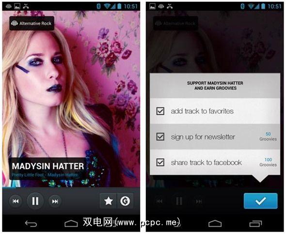 注册艺术家的新闻通讯,您将获得50个凹槽,并与您的朋友在Facebook上分享曲目,您将获得100个凹槽。因此,您可以通过传播词汇来支持艺术家,并交换这些古怪的东西。如果您使用的是Web应用程序,还有许多赚钱方式,例如在Twitter上关注艺术家,在Facebook上喜欢他们等等。其中许多功能很快就会集成到移动应用程序中。