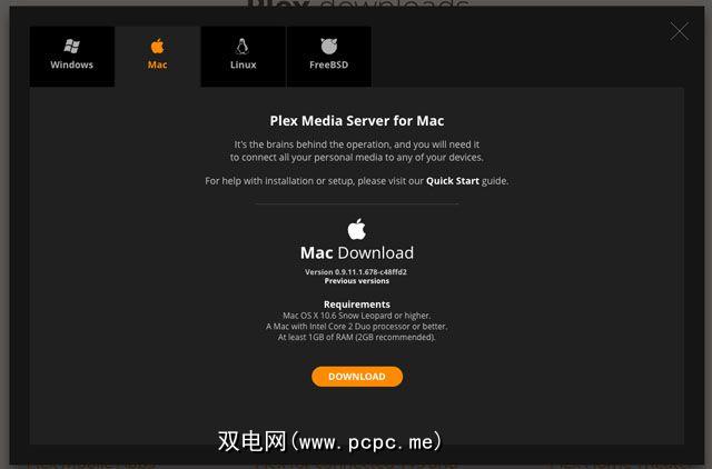 在计算机上您要用作服务器,请访问Plex下载页面,然后在 Plex Media Server 下选择计算机。该网站应该会自动检测到您的操作系统,但是如果没有,请单击正确的选项卡,然后单击下载。