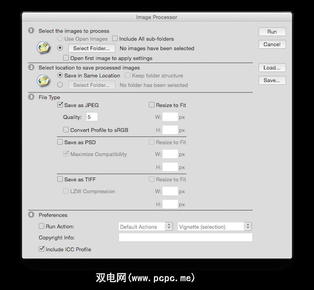 您可以选择将图像保存在同一文件夹,在这种情况下,Photoshop将为这些图像创建一个子文件夹。或者,您可以选择一个特定的文件夹来保存图像。
