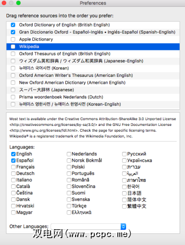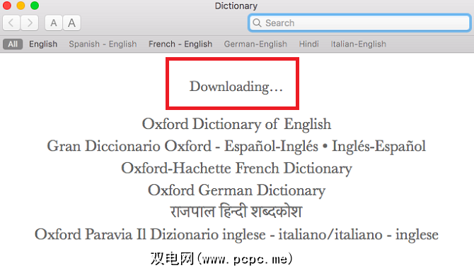 如果您是在英语国家/地区购买Mac的,则该应用会预先加载牛津美国词典,英国牛津词典英语和维基百科。您可以根据需要添加任意数量的其他字典。