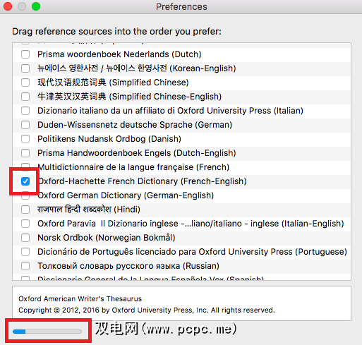 要直接从应用程序下载任何可用的词典,请导航至词典>首选项。在词典列表中,选中要安装的词典旁边的复选框。