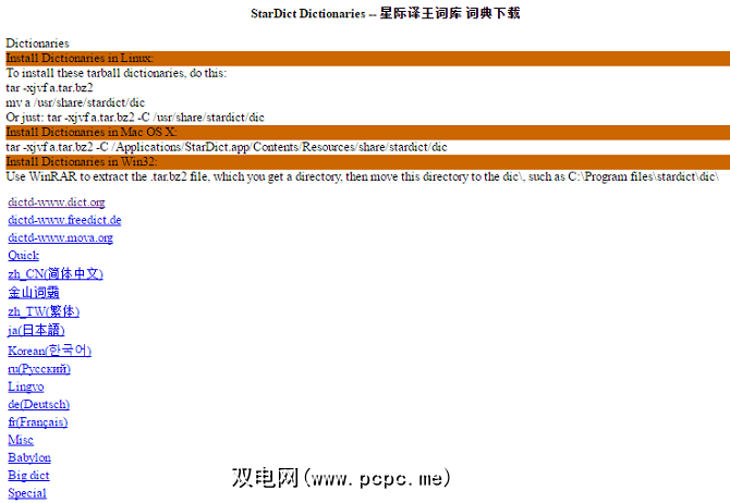 StarDict曾经是查找文件的最佳位置,但是多年来一直没有任何活跃的发展,而且由于正在进行的法律斗争,许多原始工作已经丢失。