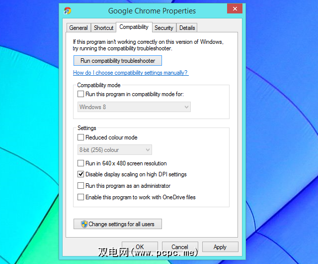 许多Windows桌面应用程序均不正确支持Windows的显示缩放比例,因此Windows 8.1包括一个解决方案-如果程序不支持本机显示缩放,则Windows会将其界面大小增加一倍。这样可以确保程序的界面很小。这种加倍会使此类应用程序中的文本模糊。