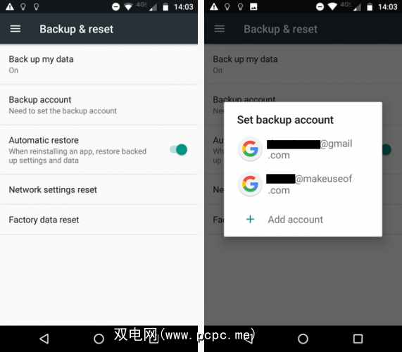 。如果您的设备上有多个Google帐户,则需要选择要用于保存备份的帐户。在备用帐户下进行选择。