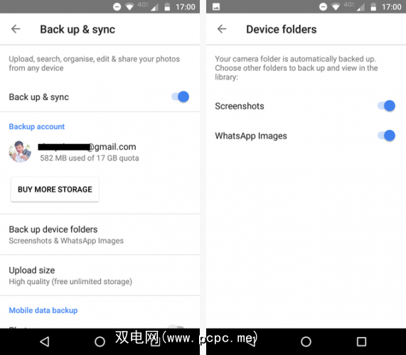 要备份文件夹,请打开Google相册并进入菜单(三行横线)>设置>备份同步>备份设备文件夹。滑动要保留的每个文件夹旁边的开关。