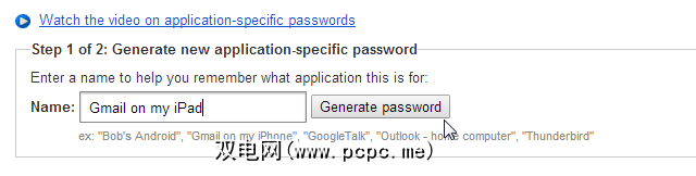 如果启用了两步验证以保护您的Google帐户安全,则需要为iPad创建应用程序专用密码,而不是输入Google帐户密码。如果您需要创建应用程序专用密码,请单击此链接以访问应用程序专用密码页面。在页面上输入“ Gmail在我的iPad上"之类的名称,单击生成密码,然后在iPad的密码字段中输入屏幕上显示的密码。