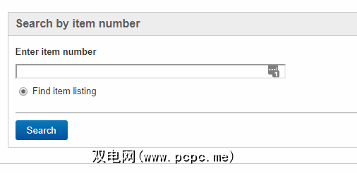 奇怪的是,高级搜索主页面中不包含eBay商品编号搜索。相反,您需要单击左侧面板中的按项目编号。