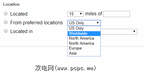 要执行全局搜索,请选择从首选位置旁边的下拉菜单中的全球。